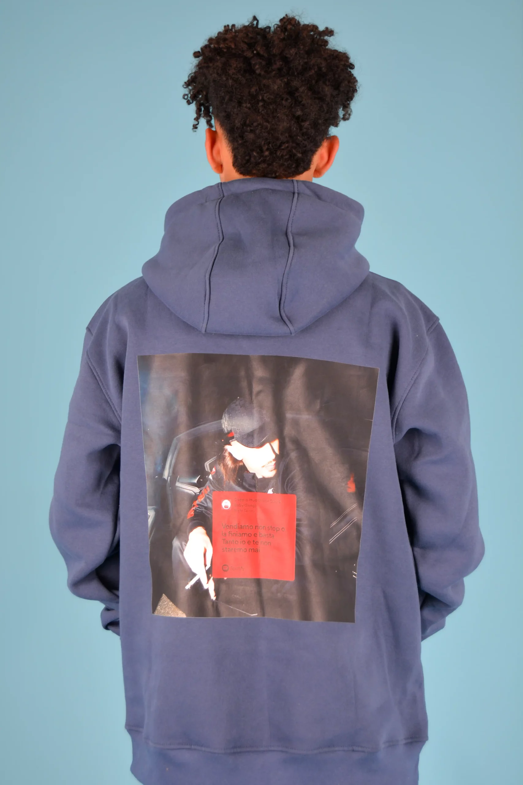 Assert your style with this dark blue hoodie featuring a powerful Baby Gang graphic on the back. Inspired by the artist’s unfiltered urban world, this sweatshirt embodies the ultimate street attitude. The printed image depicts Baby Gang in an authentic setting, true to his raw and committed style.